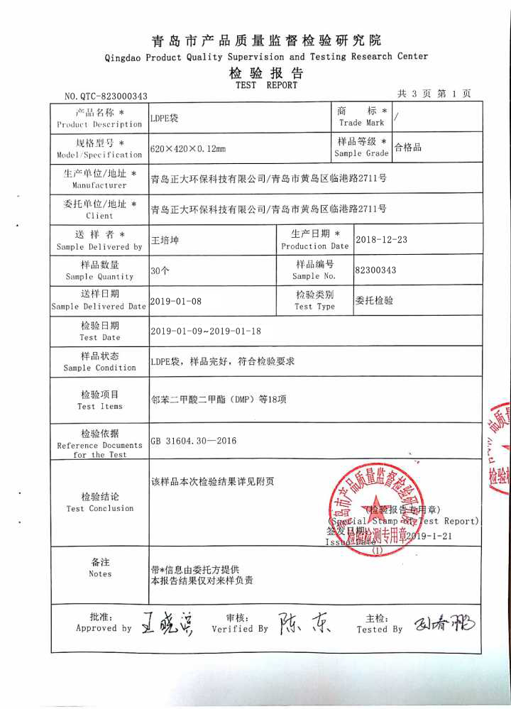 青島正大環保科技有限公司從事食品包裝20多年來,一直以產品質量安全為核心,用產品質量樹口碑,讓每一位合作的朋友都能完全放心的使用。